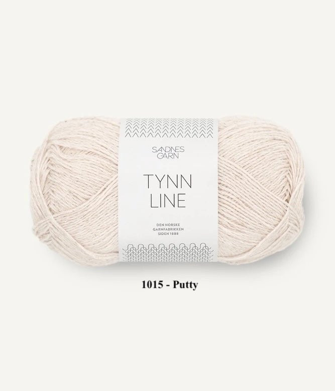 Tynn Line (or "Thin Linen"), combines cotton, linen and viscose. It has the drape and structure of linen, with the absorbent and soft properties of cotton and viscose. The combination of the sheen of the viscose with the matte finish of the linen gives the yarn an exciting structure and surface. It is perfect for fine garments, looser styled shawls, or to be held with other yarns.