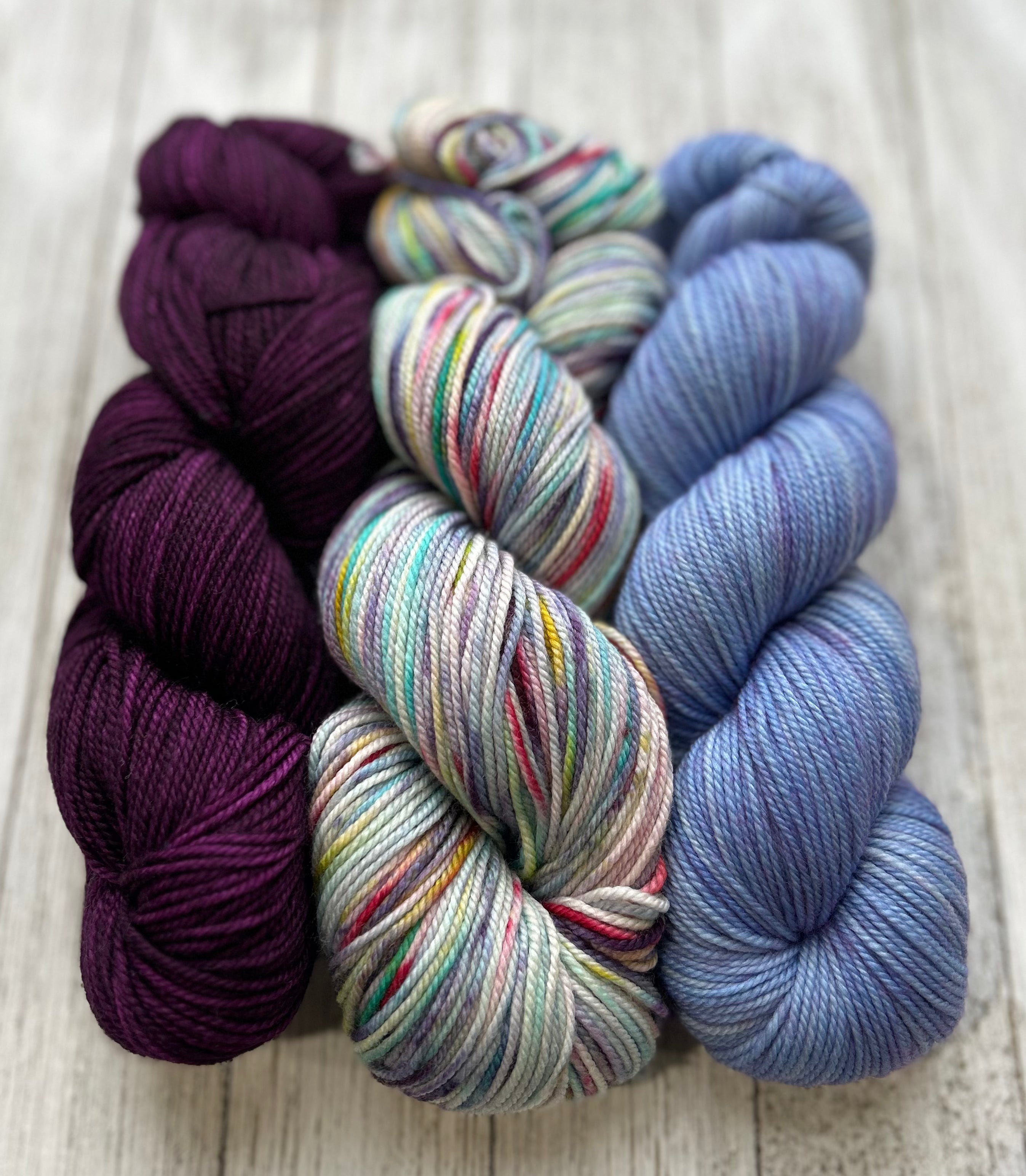 Each kit contains 3 - 50g skeins of Cashmere Sock, from our house brand, Colour Adventures.